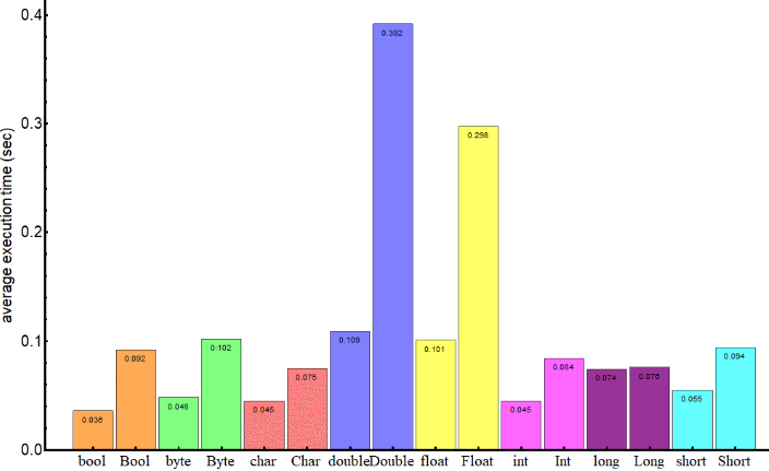 원시타입은 스택 영역에 존재한다. 반면 참조타입은 스택 영역에는 참조 값만 있고, 실제 값은 힙 영역에 존재한다. 참조 타입은 최소 2번 메모리 접근을 해야하고 일부 타입의 경우 값을 필요로 할 때 언박싱 과정(ex. Double -> double, Integer -> int)을 거쳐야 하므로 원시타입과 비교해서 접근속도가 느린 편이다.