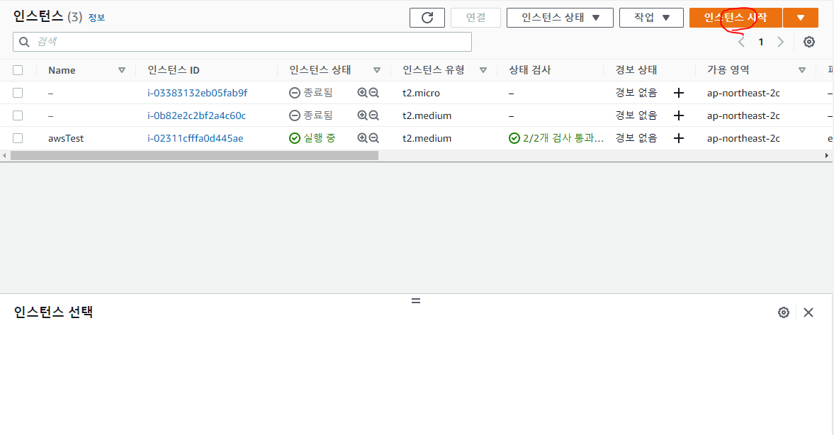 그 후에 인스턴스 시작을 누르면 인스턴스 제작 완료!
