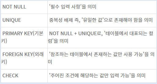 테이블 작성시에 Constraint를 사용해서 입력하는 자료에 대해서 제약, 즉 규칙을 정해줄 수 있는데요. 이때 정해진 제약에 따라서 데이터가 입력이 됩니다. 제약에 배반된다면 자료 입력이 거부되