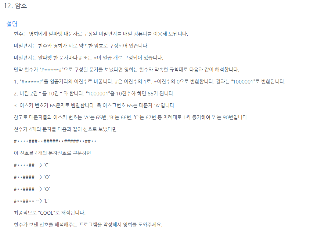 * 하지만 10진수를 2진수로 바꾸는 것을 몰라서 그리고 2진수를 아스키코드로 다시 바꾸는 것도 몰라서