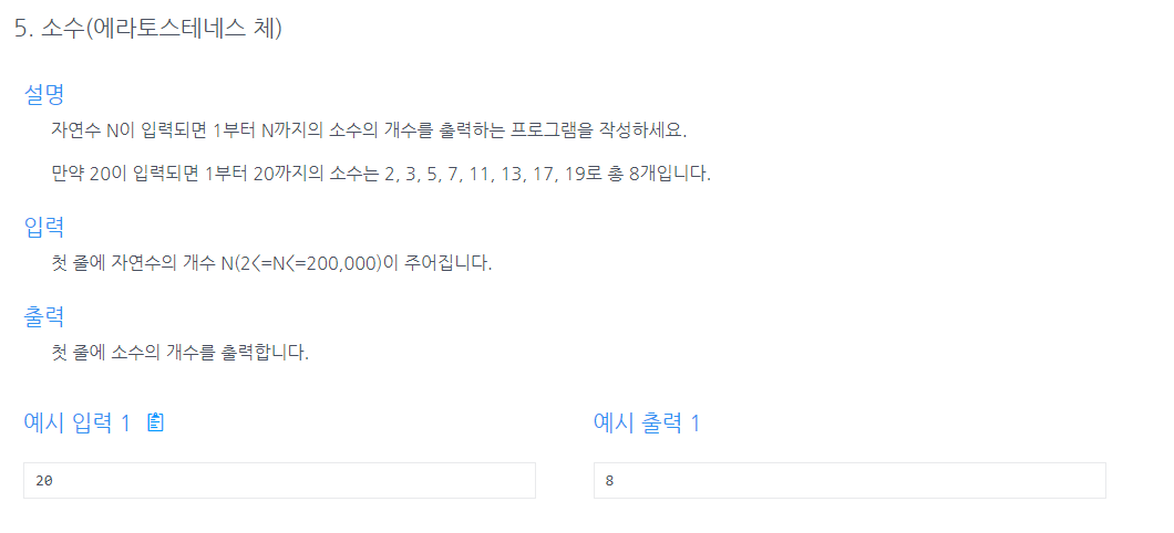 * 배열을 만들고 해당 인덱스가 0이면 체크하는 방식이고 체크한 후에 그 인덱스와 인덱스의 배수들을 전부 1로 바꿔줌으로써