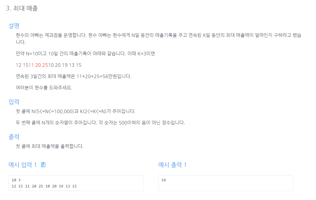 * ex) 10개의 값을 3개만큼 합해서 최댓값을 구해야 한다면