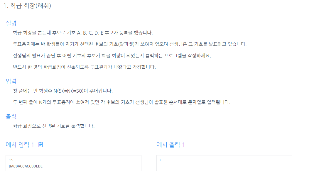 System.out.println(solution(num, input));