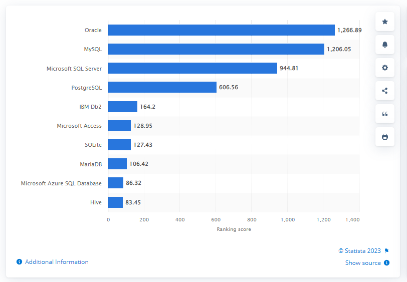 Most popular relational DBMS 2022 | Statista
