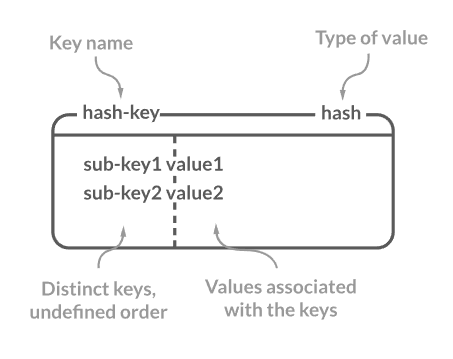 Hash는 field-value 쌍으로 값을 저장하는 컬렉션입니다. key는 String이고 value는 String, number 혹은 다른 타입의 데이터가 저장될 수 있습니다. Hash는 유저 프로필같은 복잡한 객체를 저장할 때 용이합니다. 그리고 특정한 필드에 대한 효율적인 lookup이나 업데이트와 같은 곳에서도 사용됩니다. 메모리를 적게 차지하기 때문에 수백만개의 오브젝트를 넣을 수 있어서 엄청난 효율성을 가집니다.