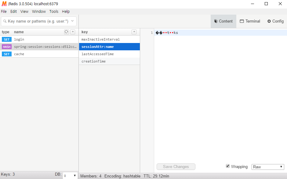 Redis에 세션을 저장하는 것도 비슷한 방식입니다. 잘 보시면 sessionAttr에 값이 저장되고, lastAccessTime과 creationTime을 저장해 사용자를 판별하는 모습을 보여주죠.