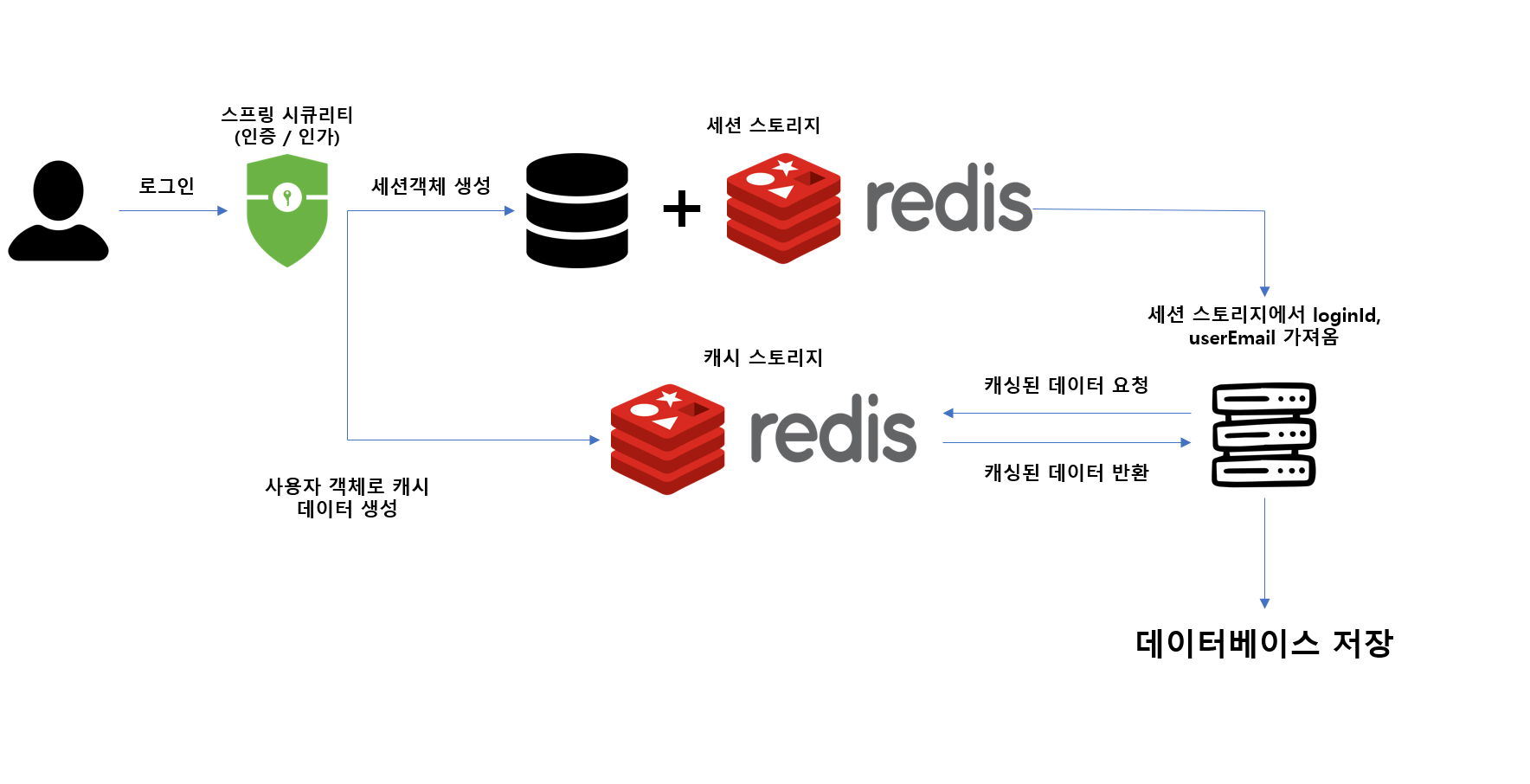 - EHcache, Memcached, Redis 중 고민하였고 세션까지 분리할 수 있고 다양한 자료구조를 지원하는 Redis를 선택하게 되었습니다.