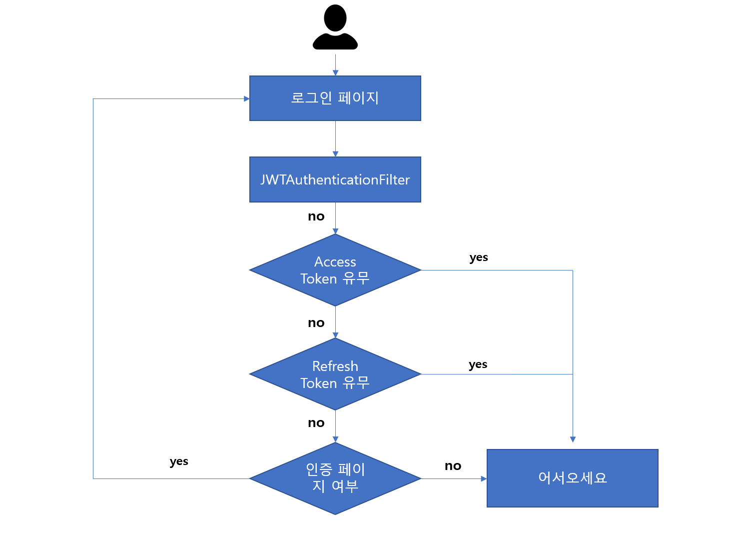 - 기본적인 HTTP 통신은 Filter에 의해 Access Token의 여부를 확인한다.