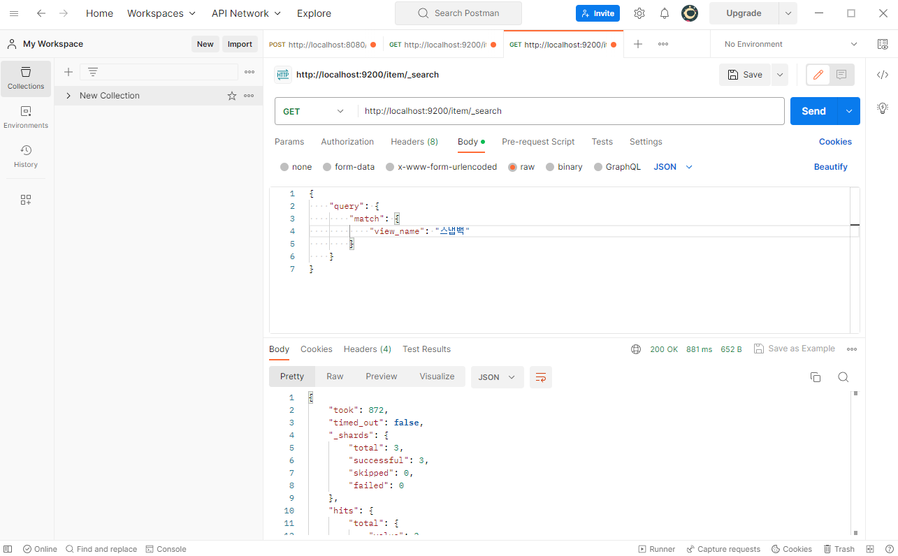 때문에 Elasticsearch에선 값을 저장하고 조회할 때 특정한 조건이 필요합니다. 때문에 준비물은 Postman입니다.