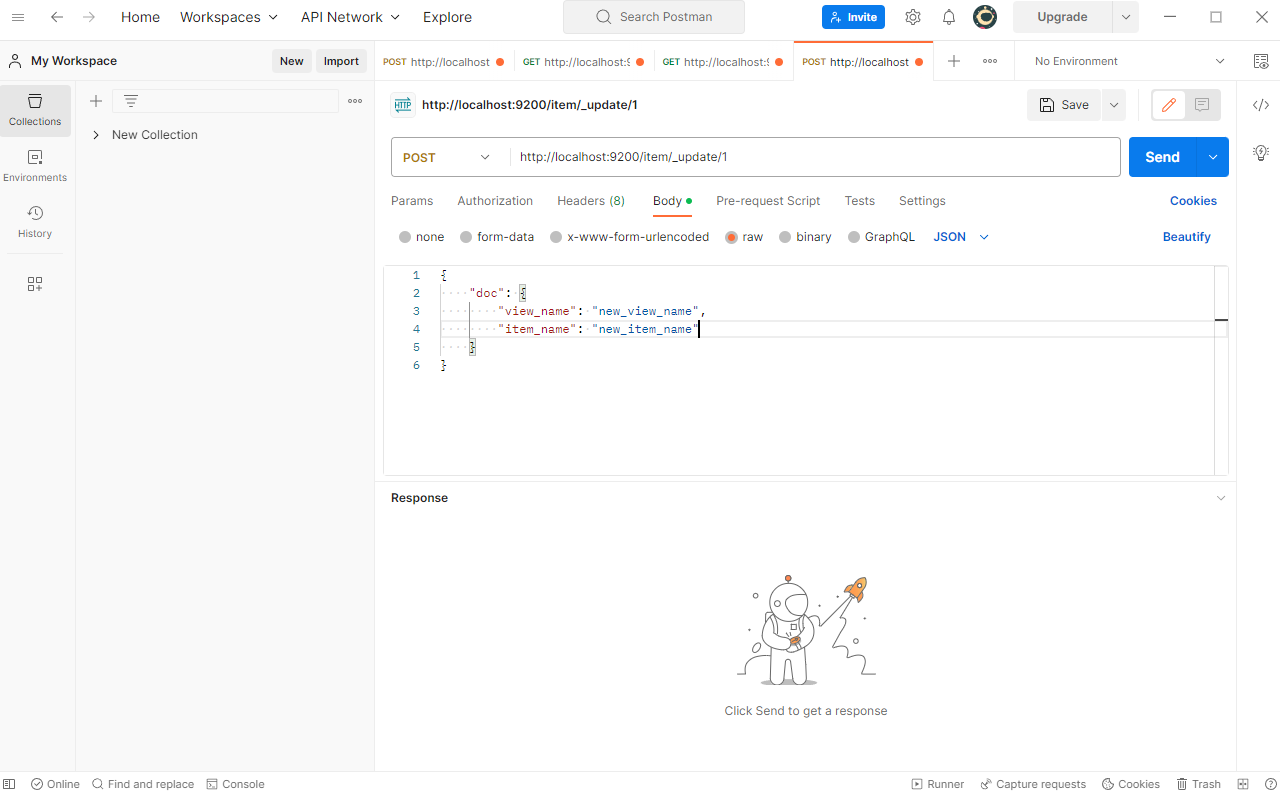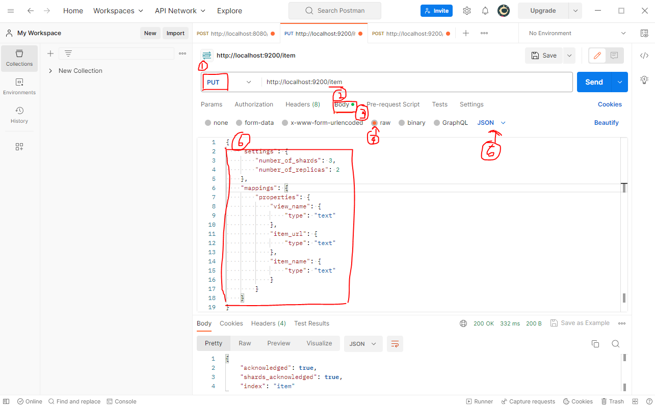 바디를 JSON으로 바꾸고 내가 설정한 인덱스의 필드와 일치하게 넣으면 됩니다.