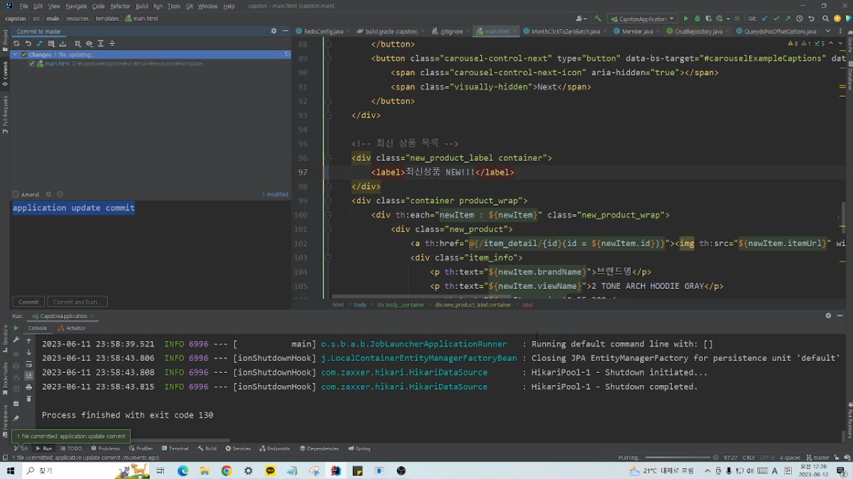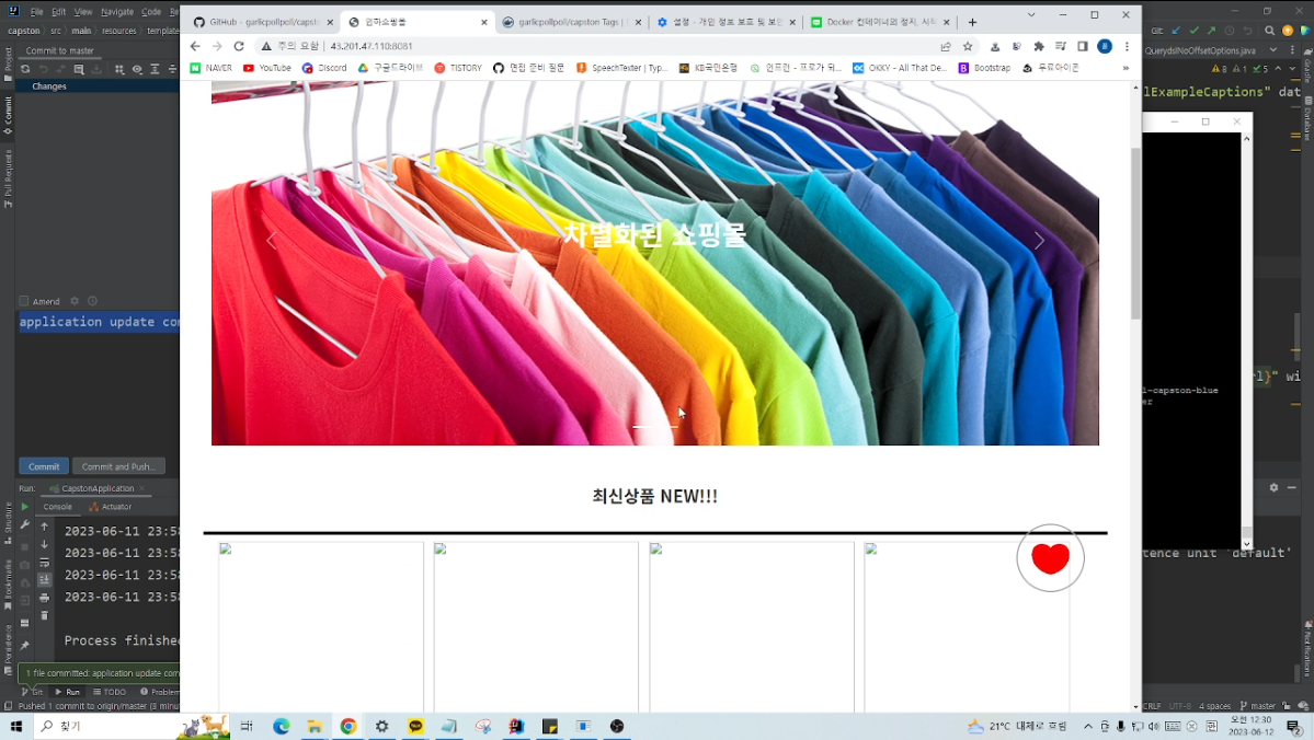 깃과 연결된 프로젝트를 커밋후 푸시합니다.
