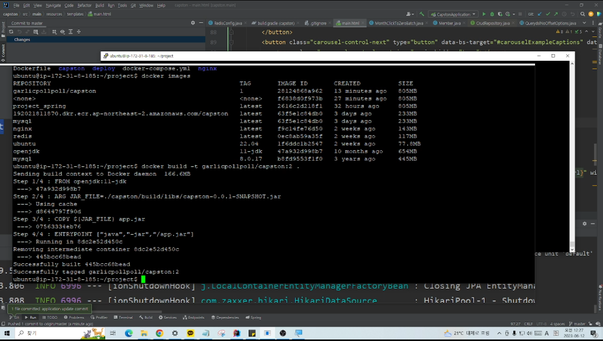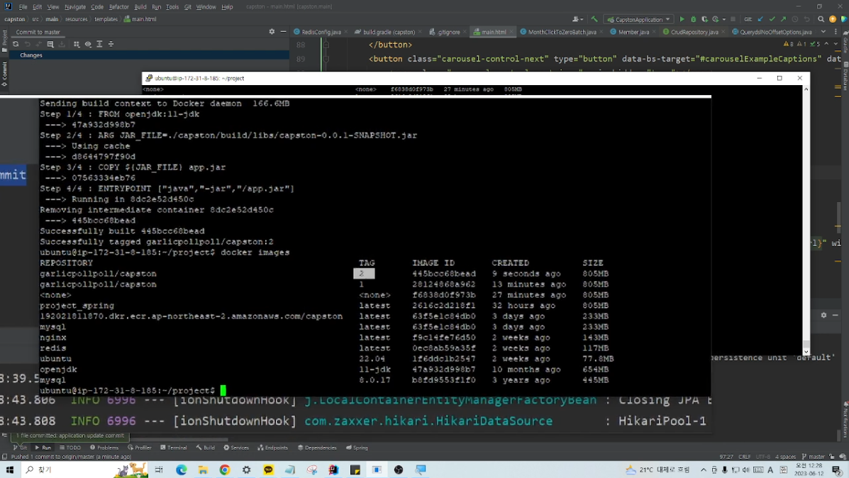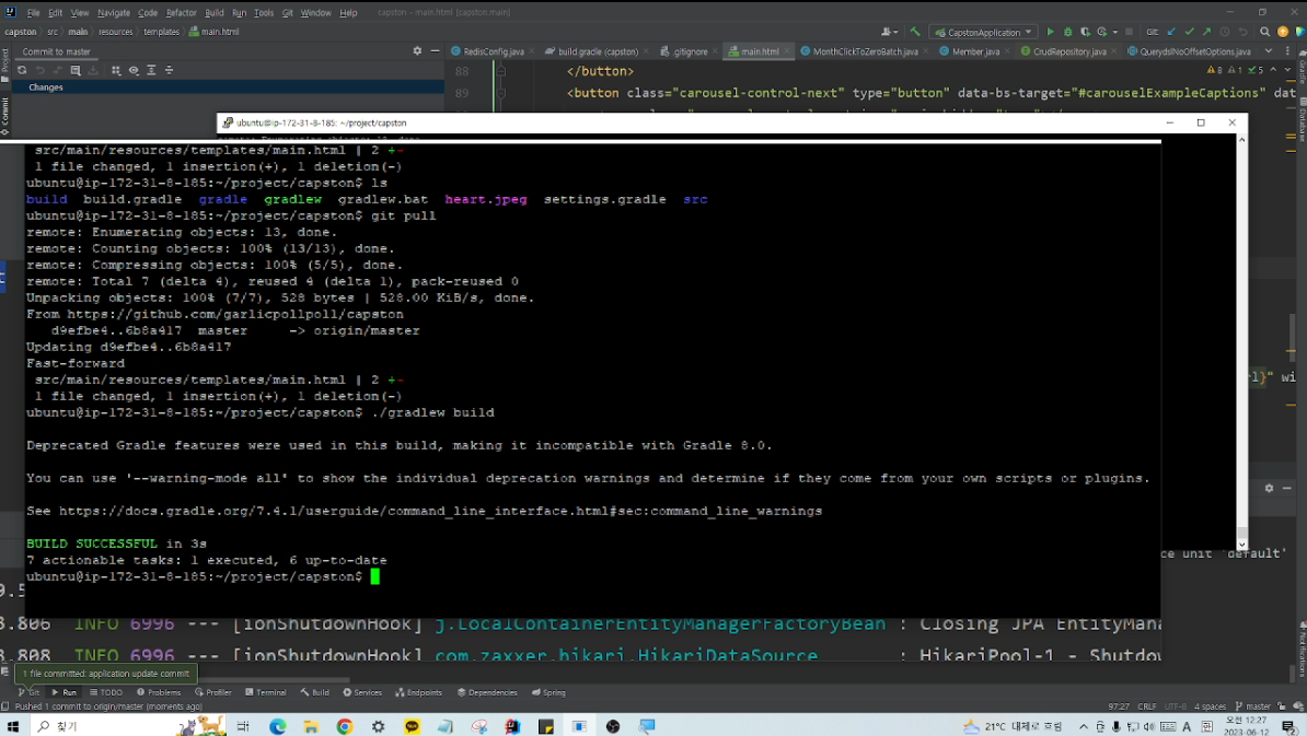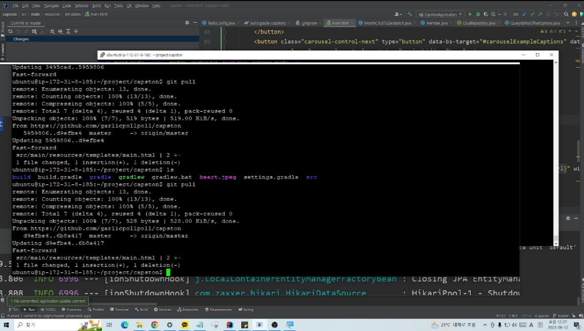 - EC2 에서 프로젝트 폴더에 들어간 뒤 git pull