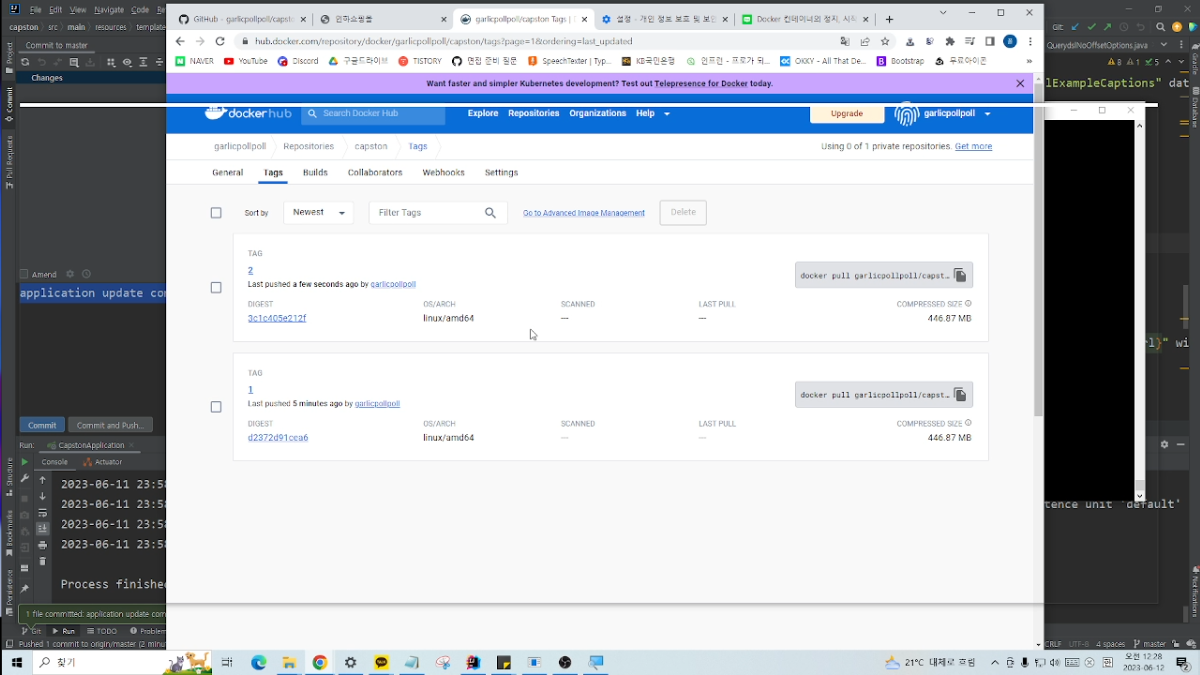 이렇게 태그를 2로 바꿔줍니다. 이렇게 바꾸면 도커 허브에서 태그가 2인 이미지를 가져와서 컨테이너로 띄워줄겁니다.