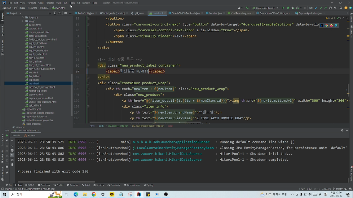 우선 우리는 지금 "최신상품" 이라고 써있는 것을 "최신상품 NEW!!!" 로 바꿀겁니다.