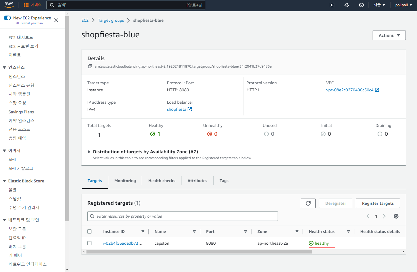 Target Group 이름을 고르고 현재 애플리케이션이 어떤 포트로 열려있는지 확인 후 적어줍니다.