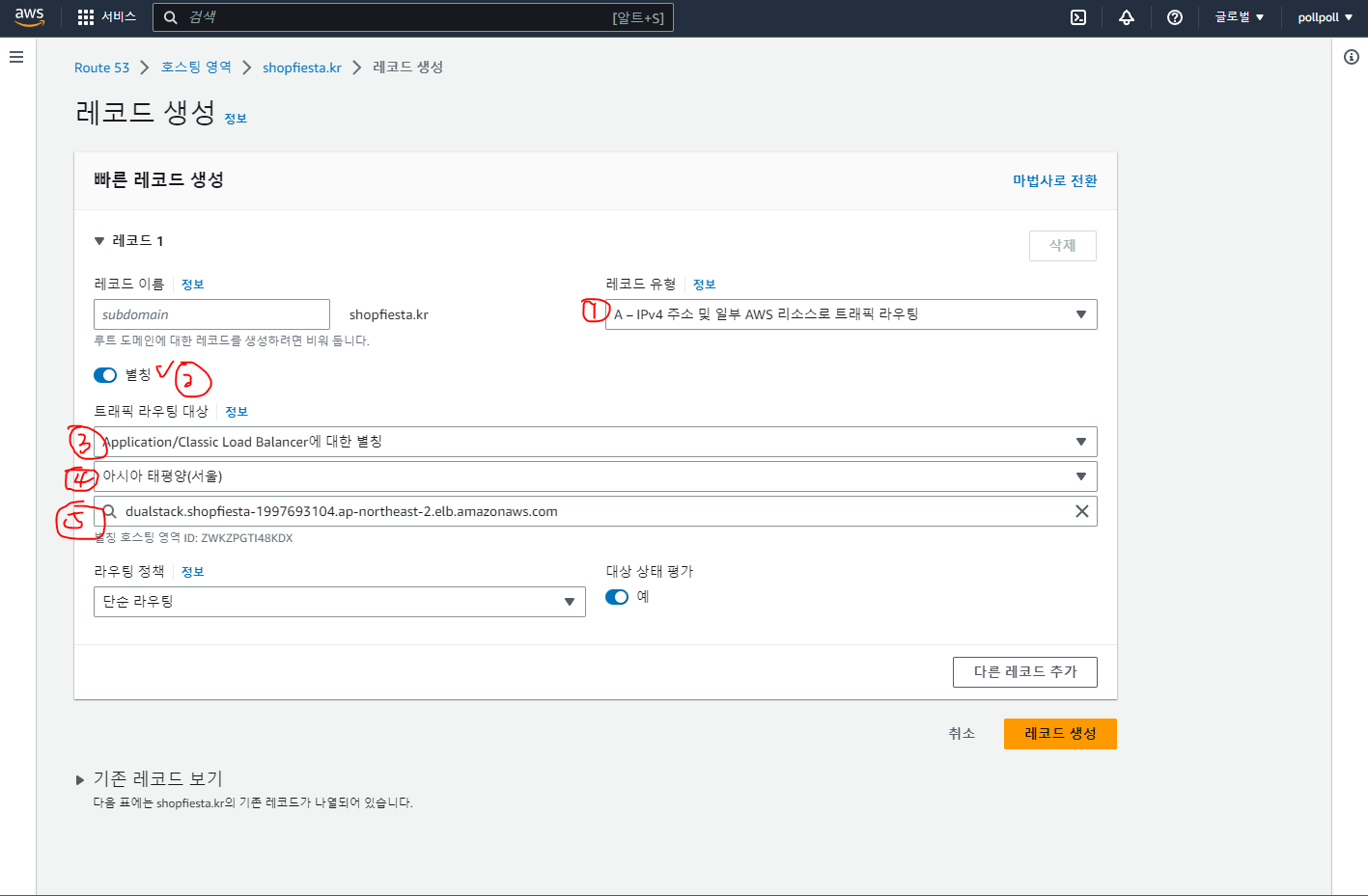 레코드 생성을 누르시고 위와같이 설정합니다.
