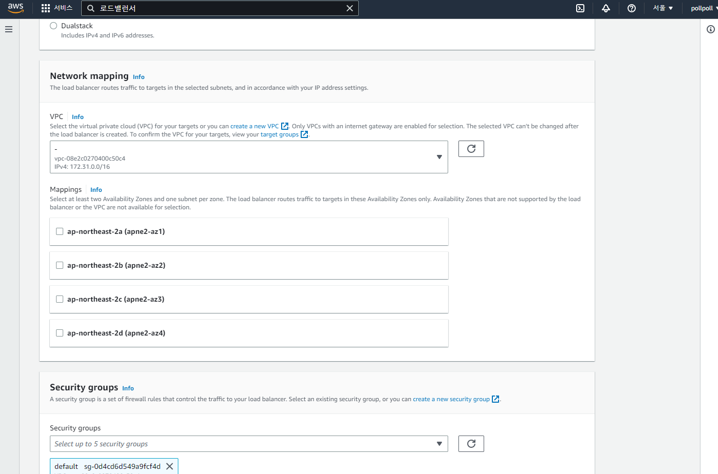 네트워크 매핑은 자신의 EC2가 어떤 지역에 떠있는지에 따라 선택해야 하는것이 다릅니다. (사실 네개 전부 클릭하면 됩니다.) 저는 시원하게 네개 전부 클릭했습니다.