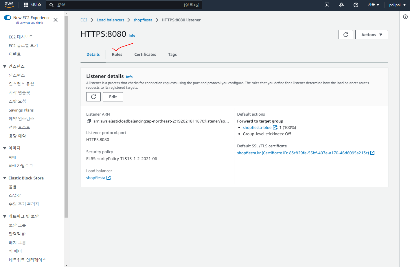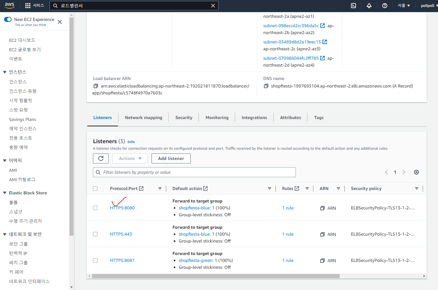 우리의 로드밸런서로 들어와서 방금 만든 리스너를 클릭합니다.