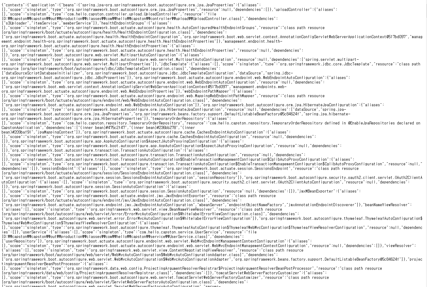 이제 서버를 띄우고 /actuator/beans 를 입력해보면?