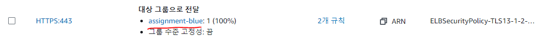 이건 제 Jenkins 로그를 따온건데 보시면 맨 아래 부분에 TargetGroups 가 변경된 것을 볼 수 있습니다. 자세히 보면 assignment-blue로 변경되었네요.
