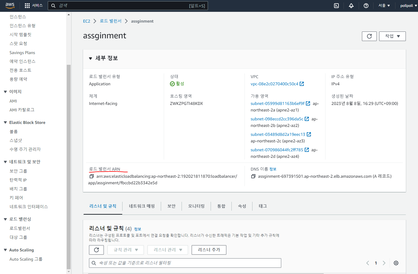 우리의 리스너와 타겟그룹의 ARN을 입력해주면?