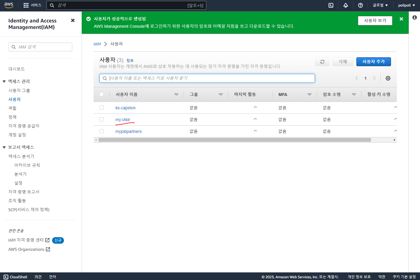 이제 한번 IAM 유저를 만들어보도록 하겠습니다.