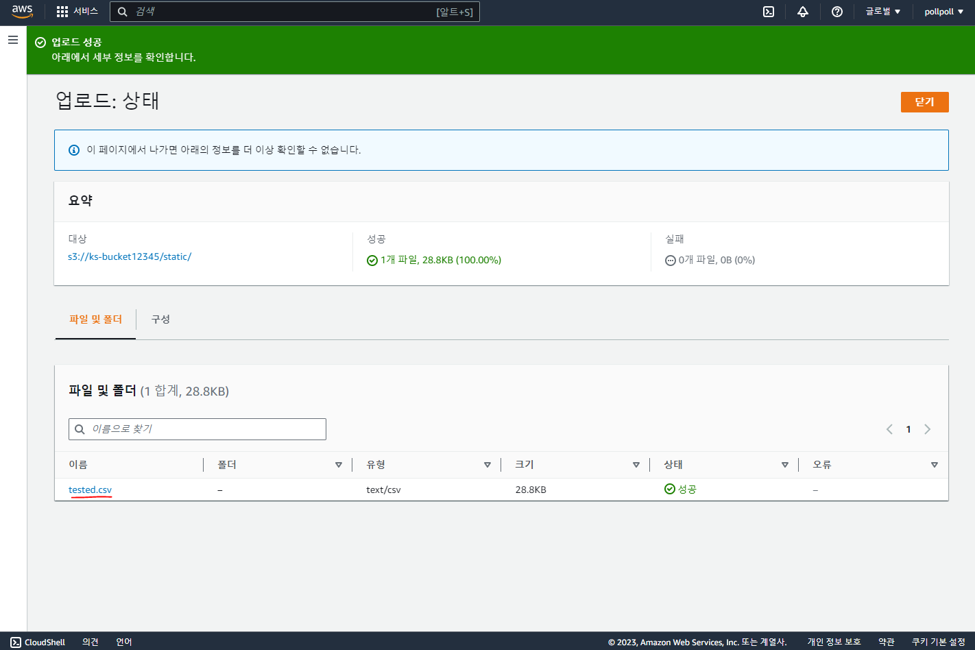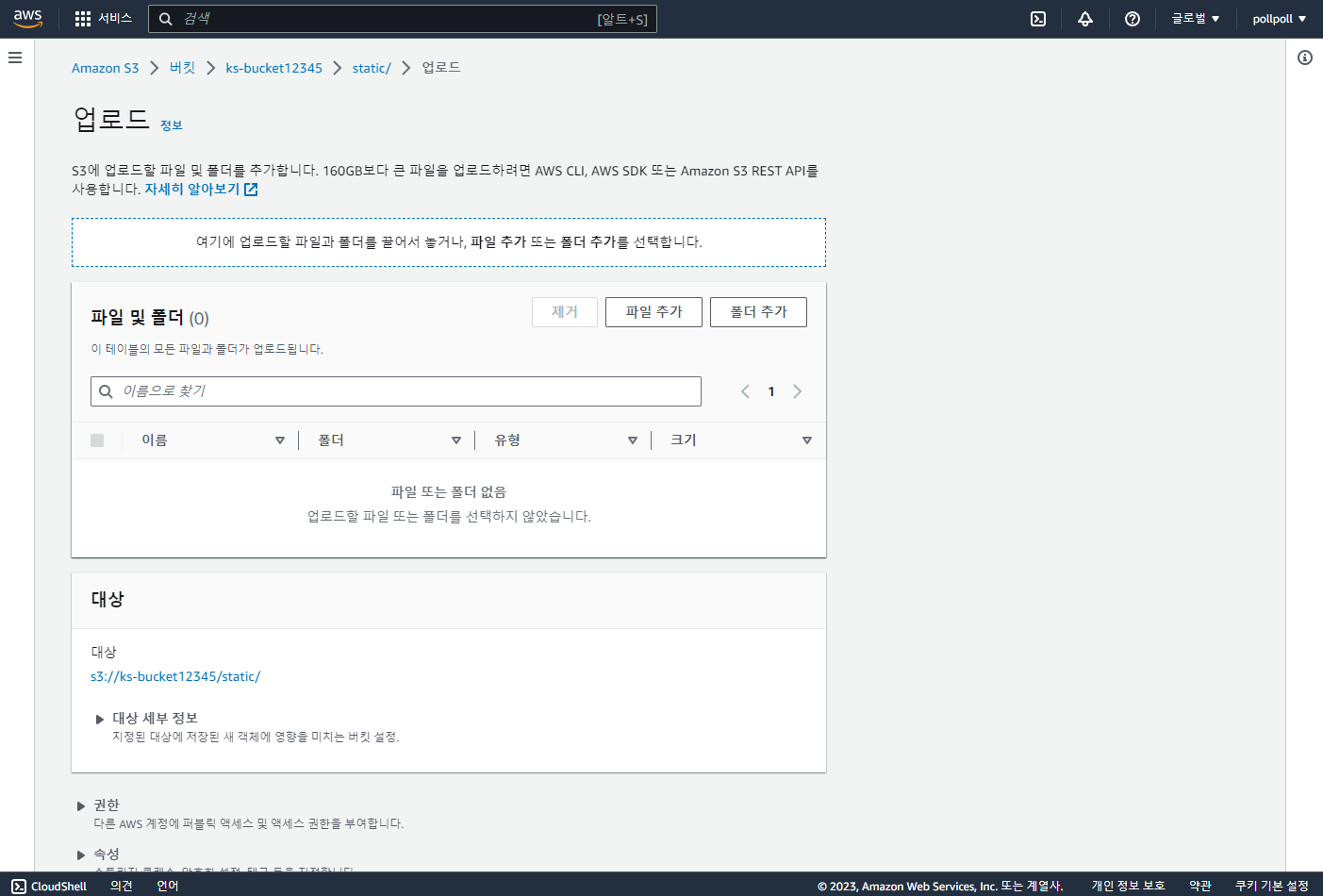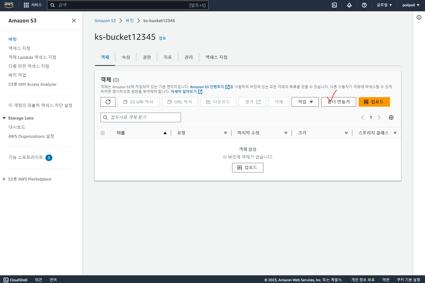 자 이제 우리가 만든 버킷을 클릭해서 들어갑니다.