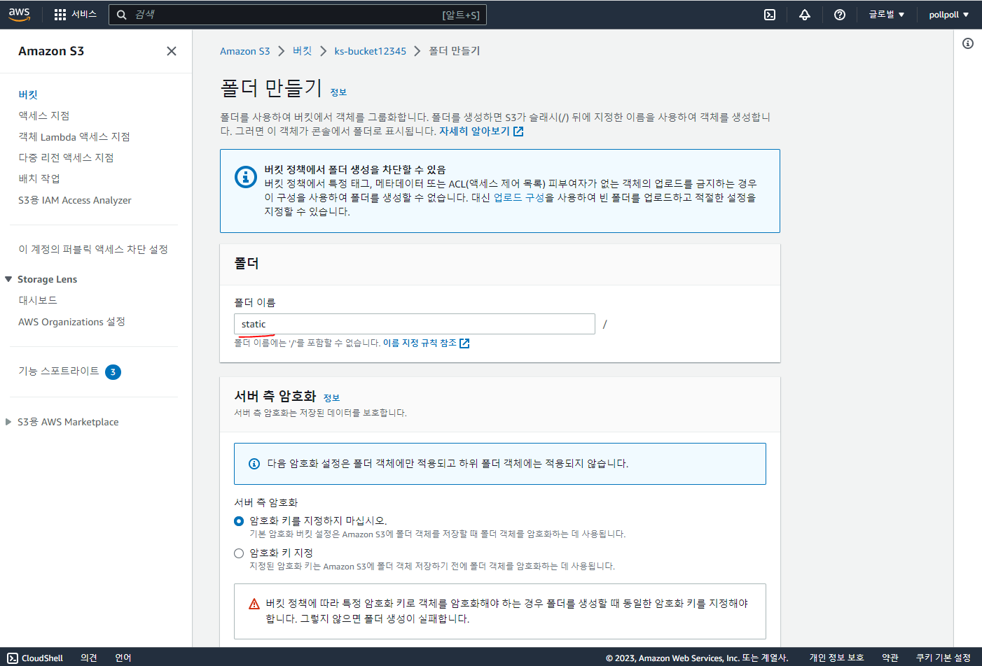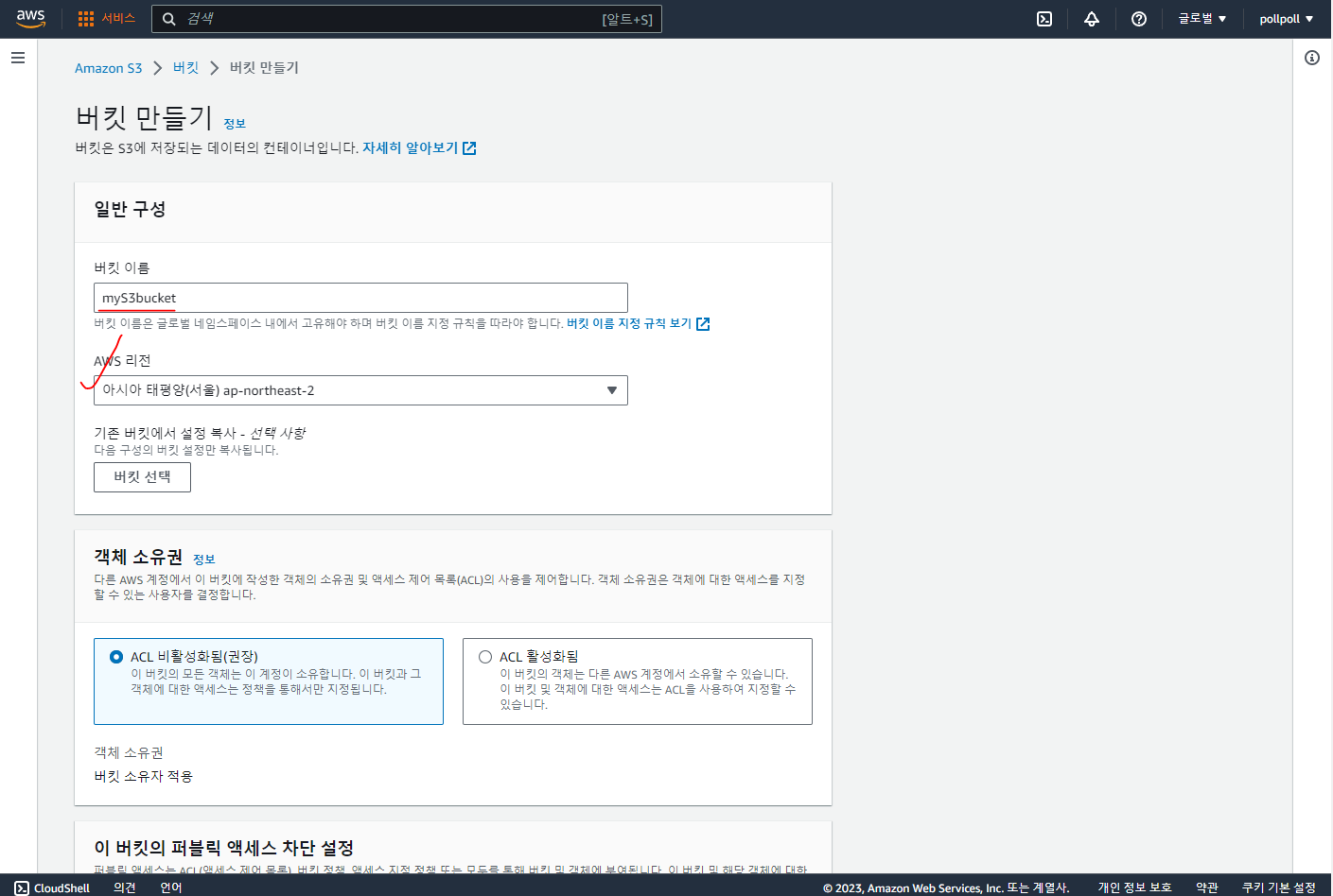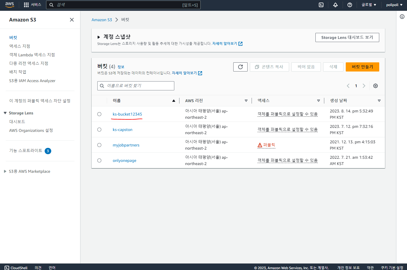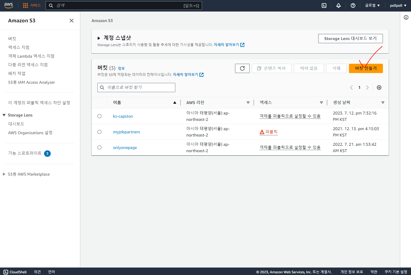 그리고 "버킷 만들기"를 클릭하면 됩니다.