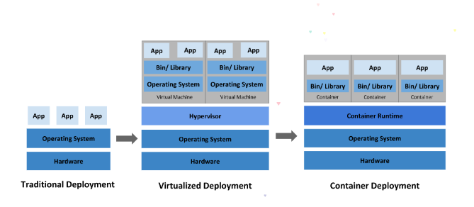 맨 처음 전통적인 개발 방식은 하드웨어에 OS를 설치하고 그 위에 바로 애플리케이션을 설치하는 과정을 거쳤습니다.