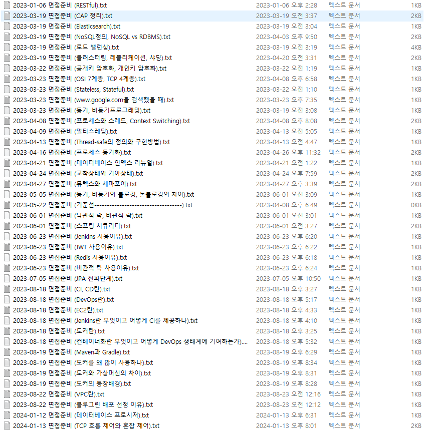 메모장 하나에 꼬리질문까지 여러개 포함되어 있어서 아마 대략... 면접 질문이 100개정도 될겁니다.