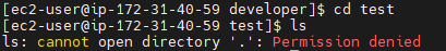 이렇게 폴더에 접근하려는 것이 불가능하고 설령 접근한다고 하더라도 ls -l 과 같은 실행 명령이 불가능합니다.