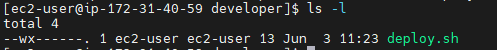소유자인 ec2-user는 읽고, 쓰고, 실행할 권한이 있고, 그룹인 ec2-user는 읽고, 실행할 권한을 부여받습니다. 그리고 그 외의 사용자는 읽고, 실행할 권한을 가지고 있죠.