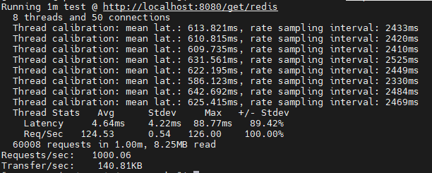 wrk2를 이용해 API 테스트를 진행했습니다.