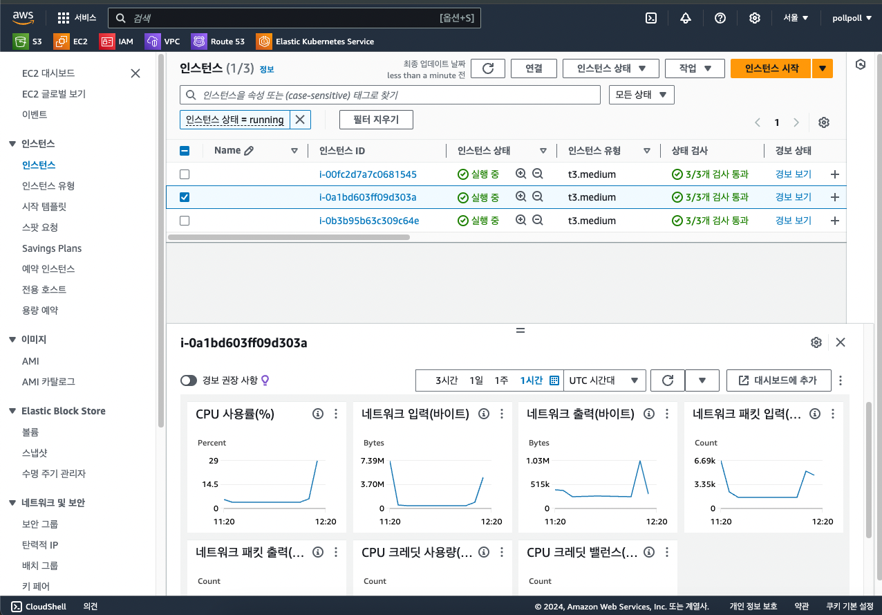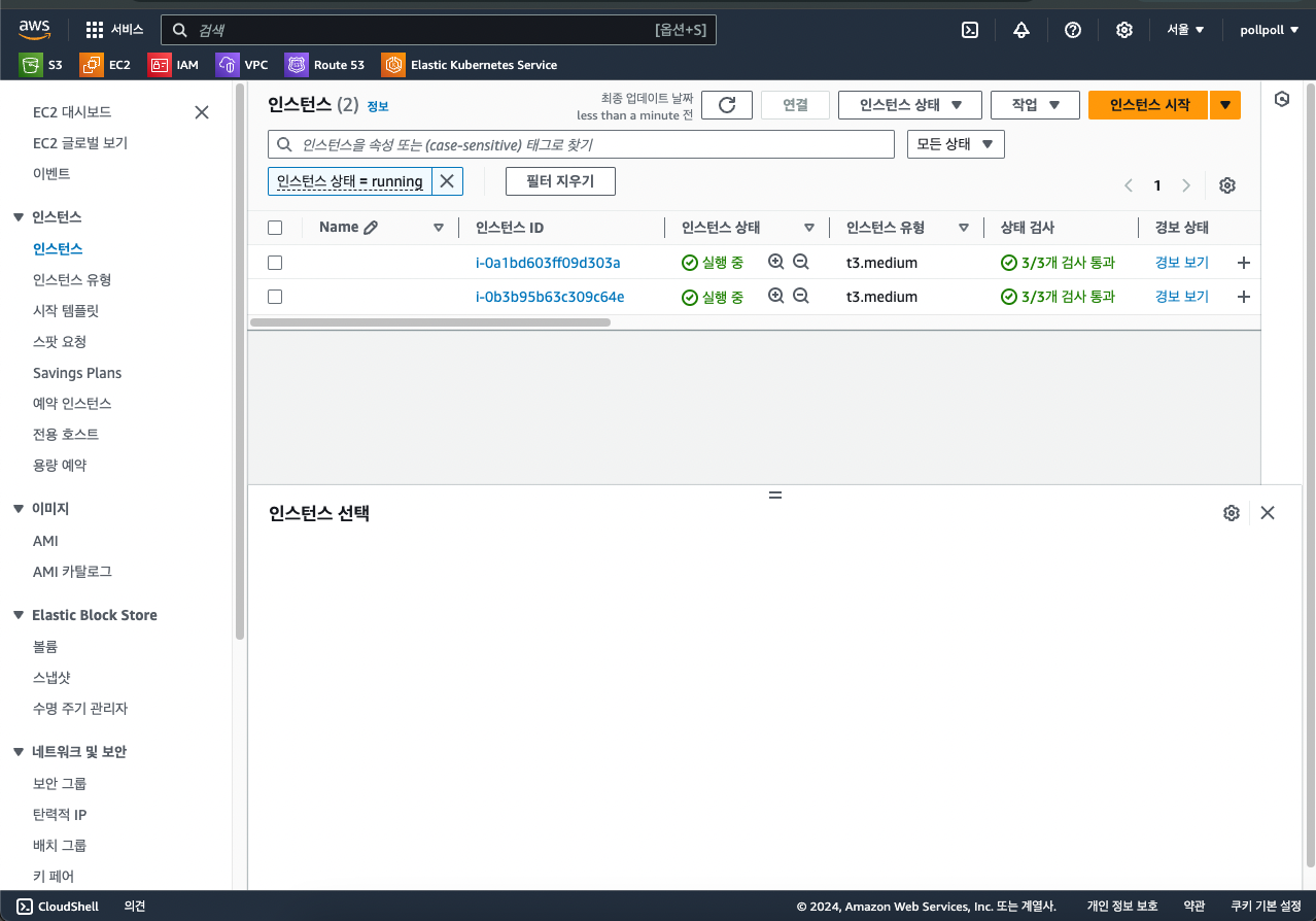 EC2 인스턴스 상황을 확인해보겠습니다.