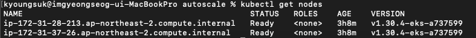 그리고 노드도 확인해보면... 줄어들겠지만 EKS의 CA를 사용하는 경우 AWS ASG가 노드를 늘리는건 금방 늘리는데 죽일때는 정말 느리게 죽입니다.