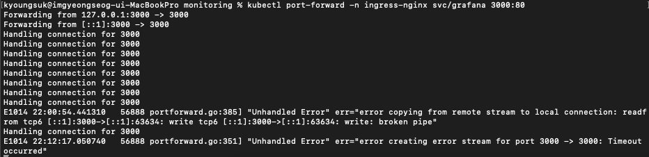 이렇게 포트포워딩을 해놓고 다른 터미널을 띄워줍니다.