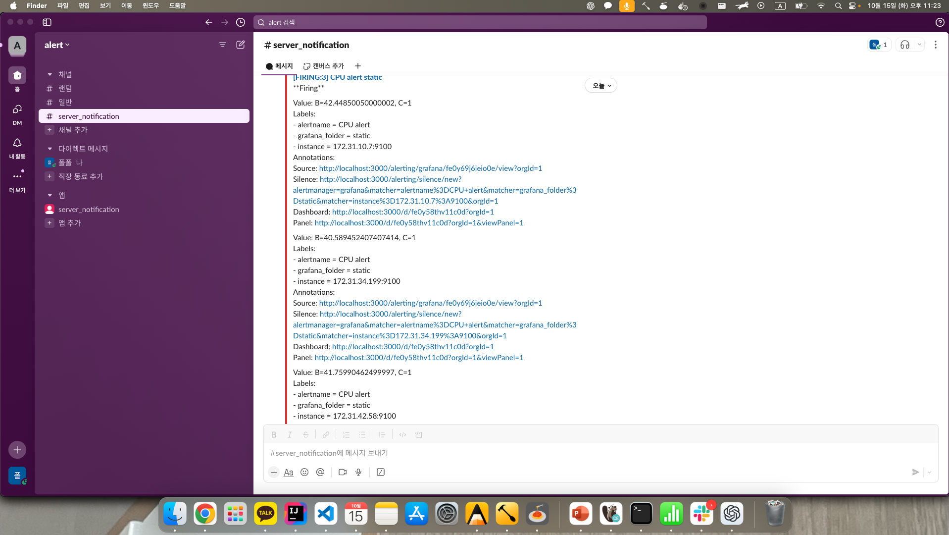 이전엔 프로메테우스 + 그라파나로 모니터링 환경을 구축해봤습니다. 이번 포스팅에선 이전 포스팅에다 슬랙을 추가해보도록 하겠습니다.