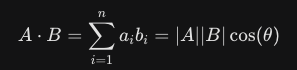 코사인 값이 0에 가까워질 수록 (세타가 90도에 가까워질수록) 내적 값이 작아져서 0에 수렴하고 그럼 이 두 벡터는 수직방향을 가리키고 있는 것이라고 판단하고 이를 유사도가 없다. 라고 판단합니다.