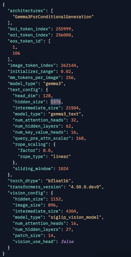 이건 Gemma-3-27b-it의 config.json을 가져온 것입니다.
