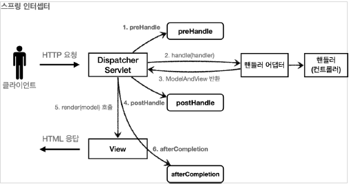 -스프링 인터셉터는디스패처 서블릿과 컨트롤러 사이에서 컨트롤러 호출 직전에 호출된다.