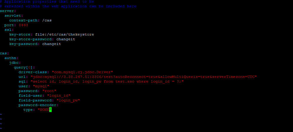 이제 로그인을 하기 위해서 사용자가 있어야겠죠? 가장 간단한 방법은 static한 사용자를 만들면 됩니다. 그냥 하드코딩으로 때려박는거죠. 하지만 이 방법은 생략하도록 하겠습니다. 우리가 본질적으로 원하는 것은 데이터베이스에 존재하는 사용자를 이용해서 로그인을 진행하는 것이니까요. static한 사용자 인증을 패스하고 바로 데이터베이스 사용자를 등록해보도록 하겠습니다. 일단 CAS 서버를 띄웠으니 데이터베이스를 위한 서버를 하나 더 띄우겠습니다. 그곳에서 docker, docker-compose을 내려받아주고 Docker를 이용해 MySQL을 띄웁니다. MySQL 사용자를 만들어주고 외부 연결까지 마치고 나면 준비 끝입니다. 너무 두루뭉술하게 넘어가서 왜이렇게 금방금방 넘어가? 하신다면 아래의 링크를 통..
